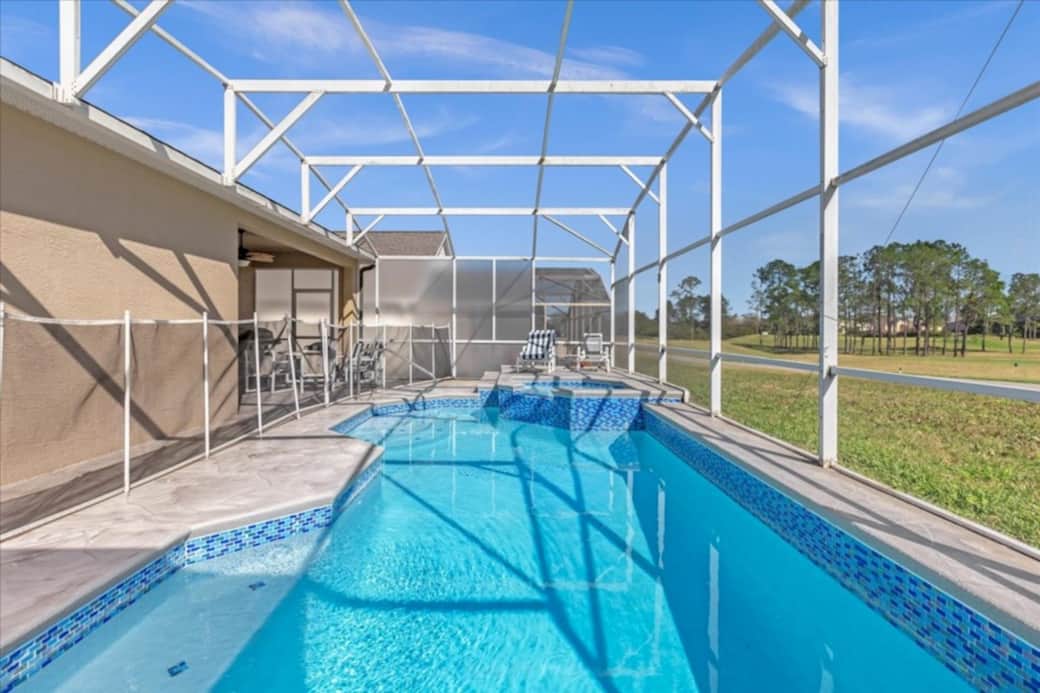 The lovely screened pool has plenty of patio seating and overlooks the golf course. You have an ample supply of pool towels and pool furniture. Pool heating can be added for additional fee, please enquire if you would like a quote for this.